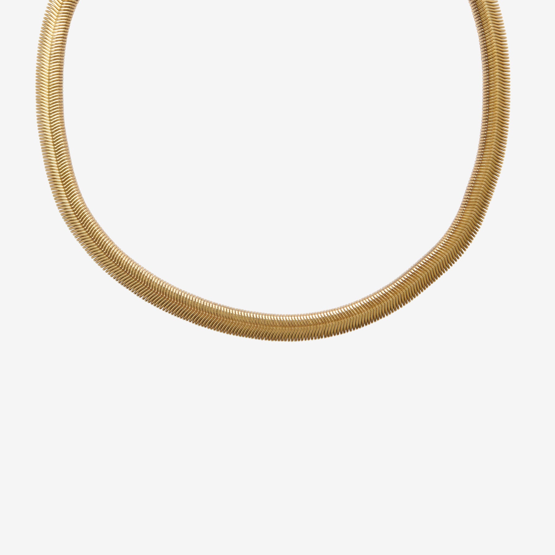 Täydellinen asuste nostamaan mitä tahansa asua. Tämä litteä käärme kaulakoru lisää tyylikkään ja modernin muotoilunsa ansiosta ripauksen eleganssia mihin tahansa ilmeeseen. Vangitse ystäviesi huomio ja käännä päitä tämän välttämättömän koruosaamisen avulla!