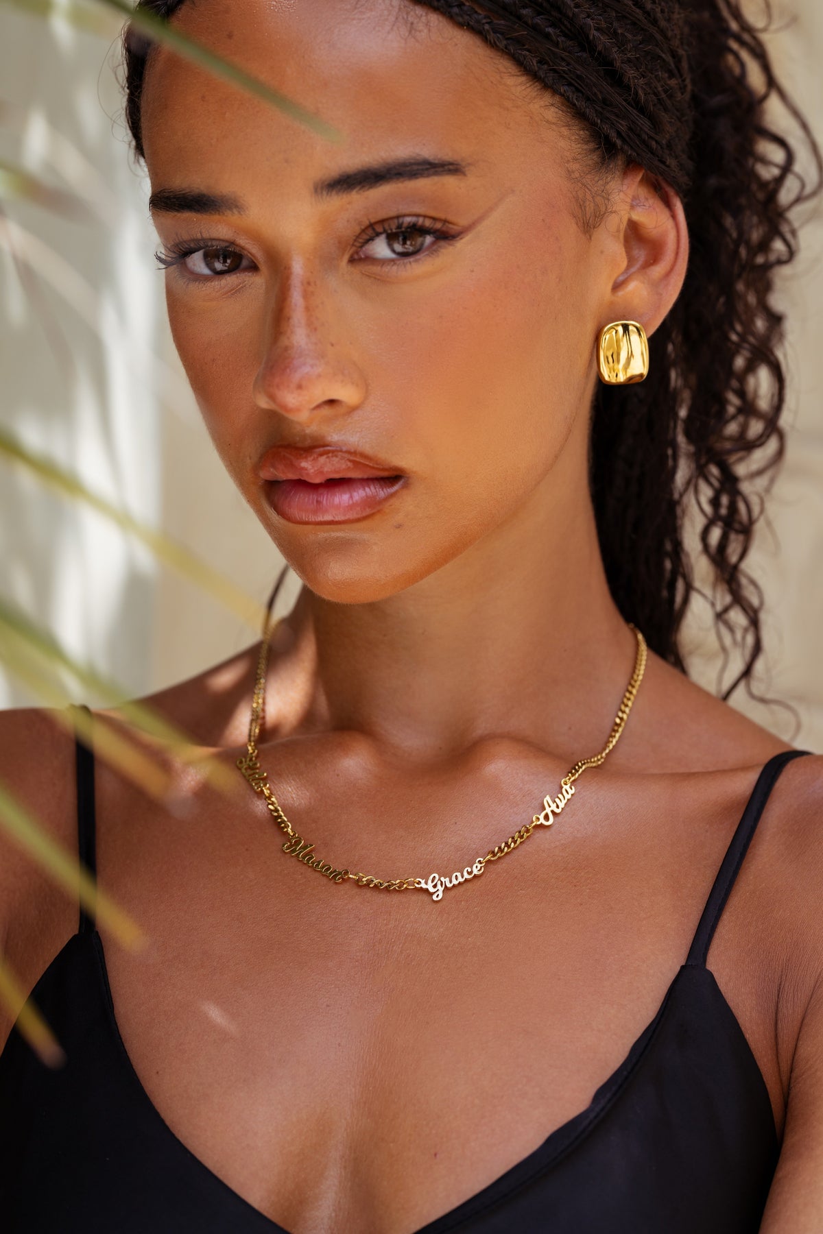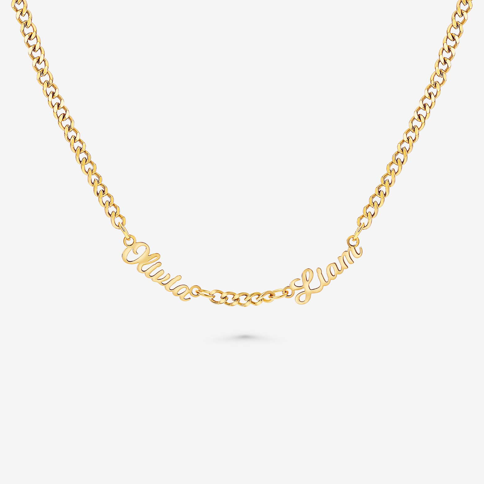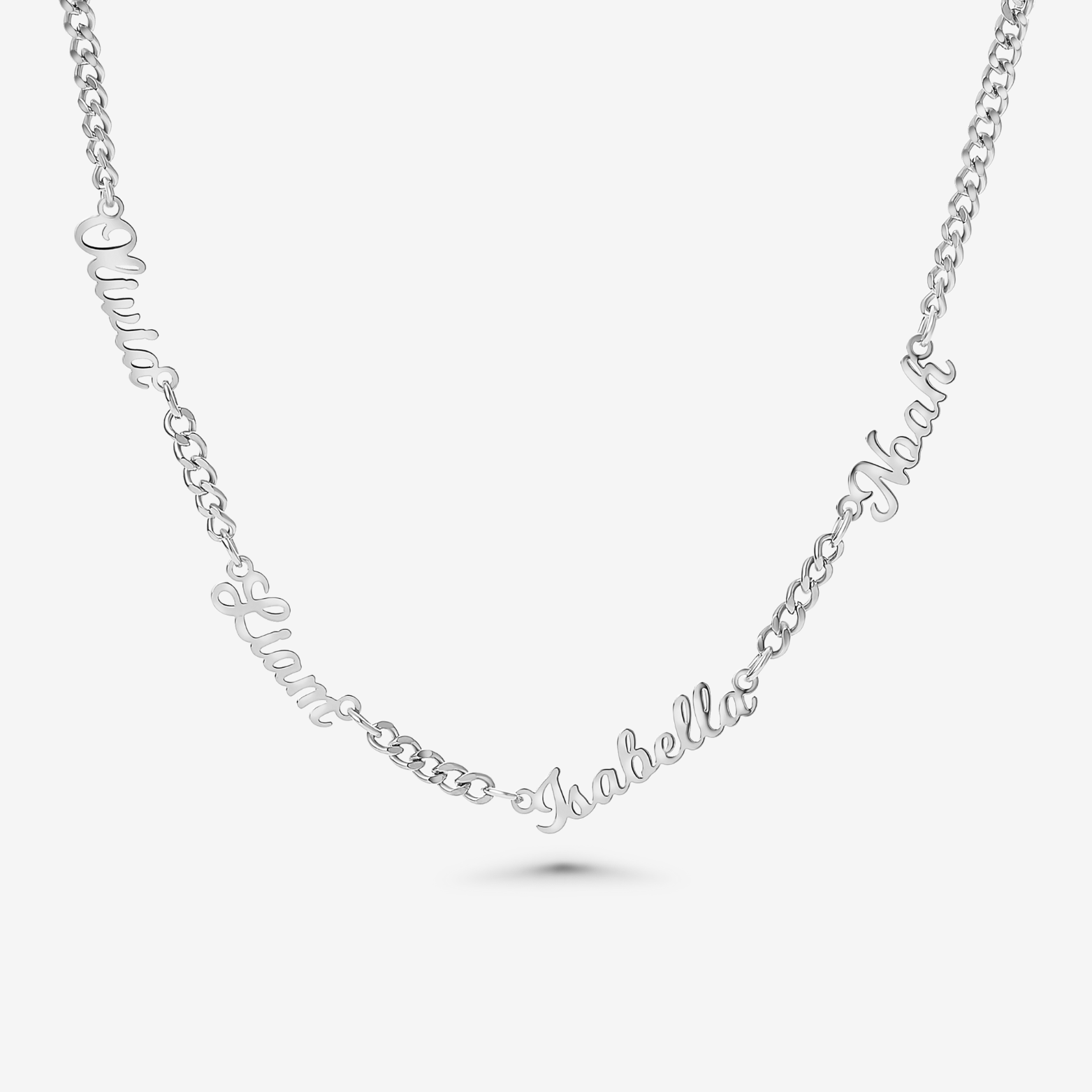 Esittelemme Useat Nimi Kaulakorun, henkilökohtaisen statement-kappaleen, joka on suunniteltu täydentämään mitä tahansa tyyliä. Mukauta se jopa neljällä nimellä meidän ainutlaatuisessa Miami-fontissamme ja luo ainutlaatuinen ja merkityksellinen asuste, joka juhlistaa rakkaitasi.