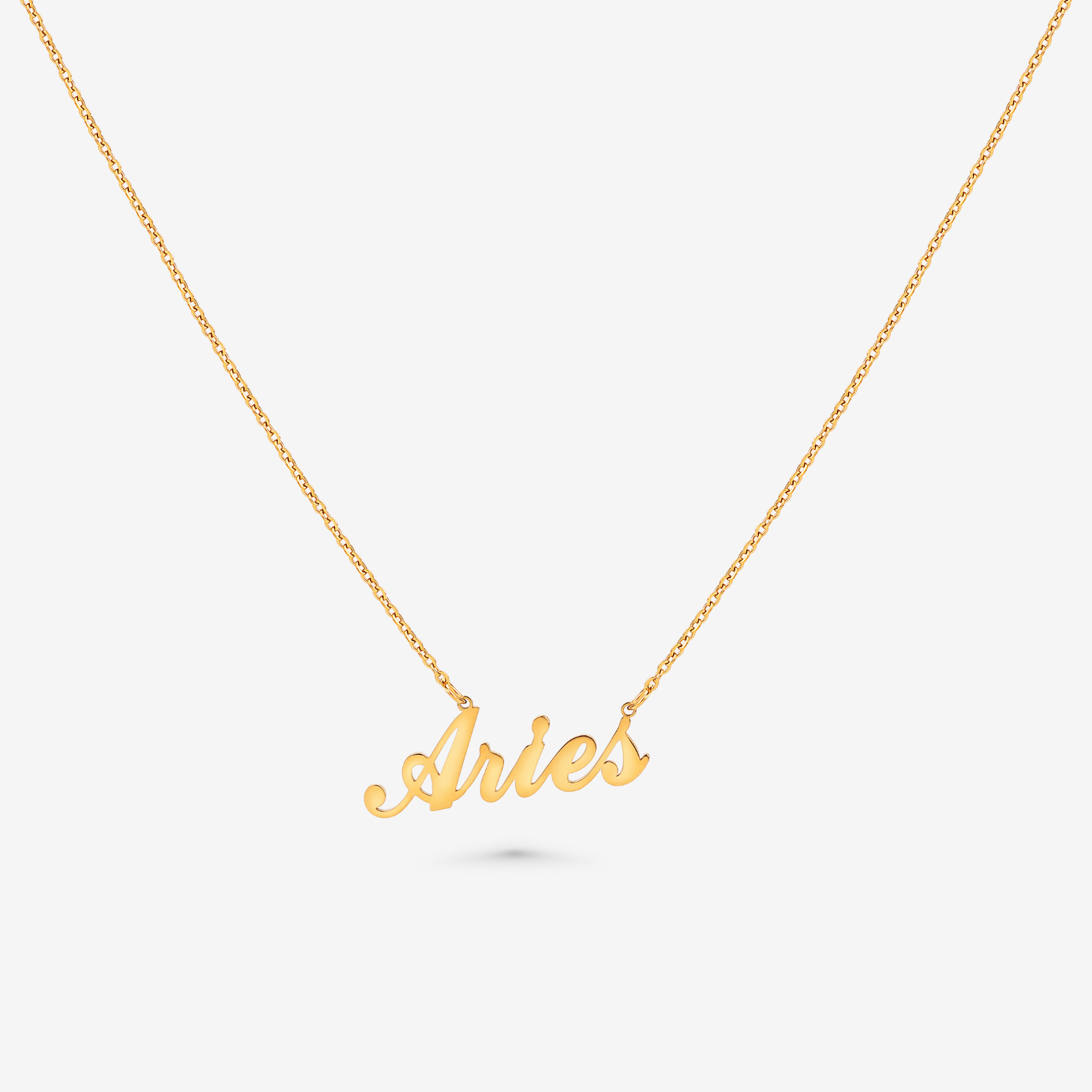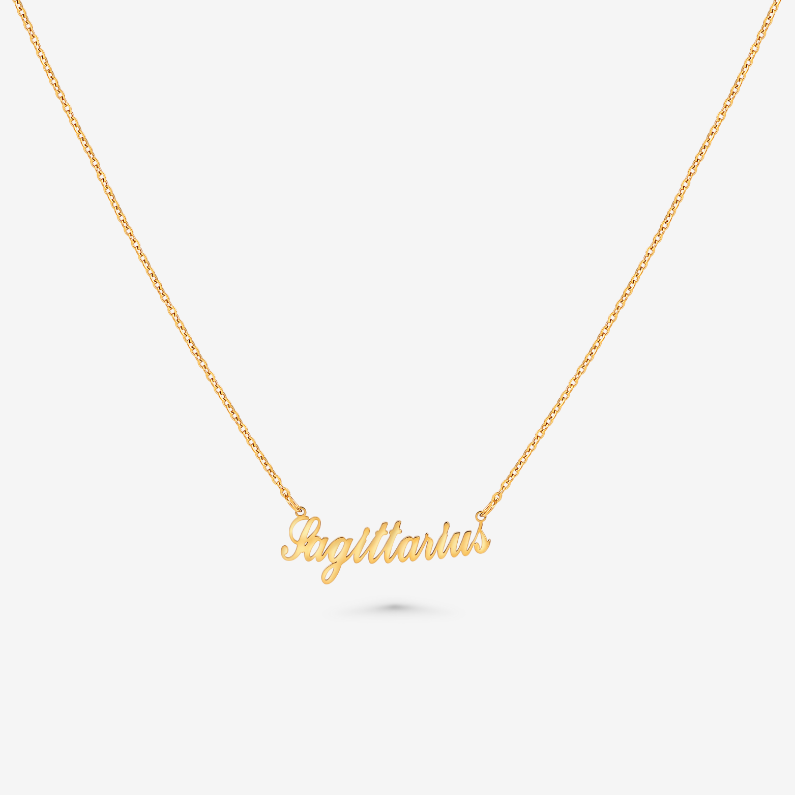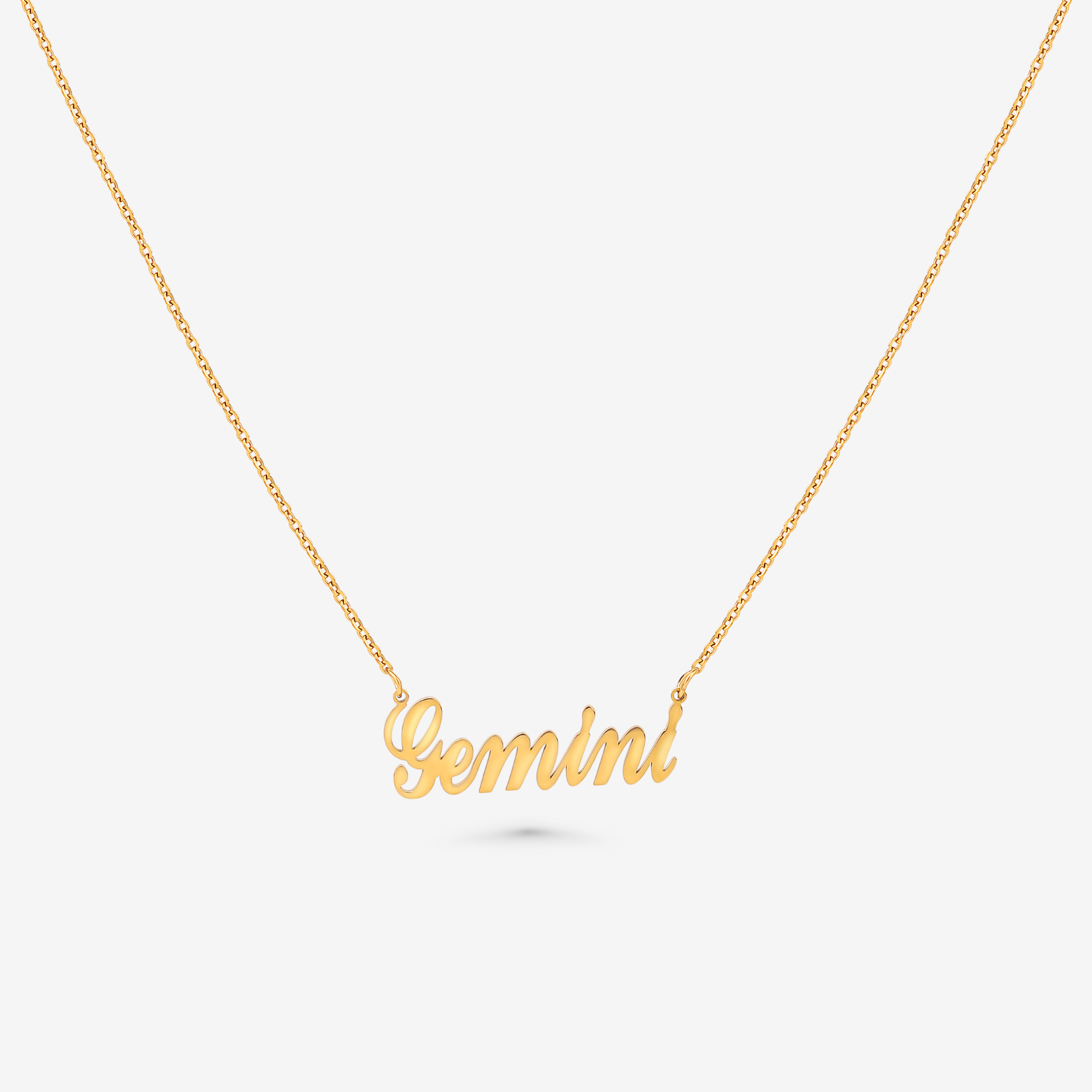 Ilmaise yksilöllisyyttäsi Zodiac Nimenkaulakorullamme, tyylikäs tapa esitellä horoskooppimerkkiäsi. Valmistettu 18K kultapinnoitetusta tai hopeapinnoitetusta ruostumattomasta teräksestä, tämä henkilökohtainen koru yhdistää merkityksen ja tyylin vaivattomasti.