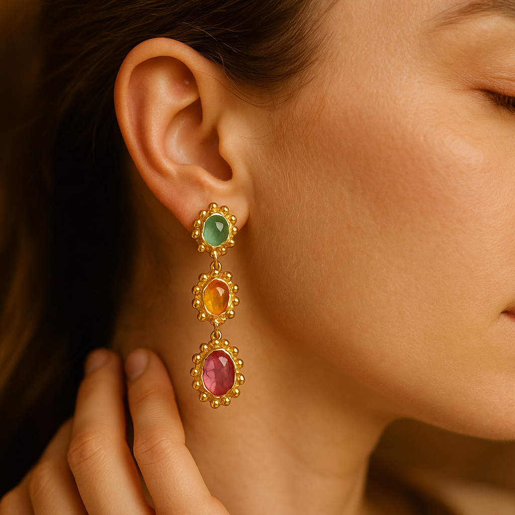 Undine - Kultaiset Korvakorut Värikkäillä Kivillä