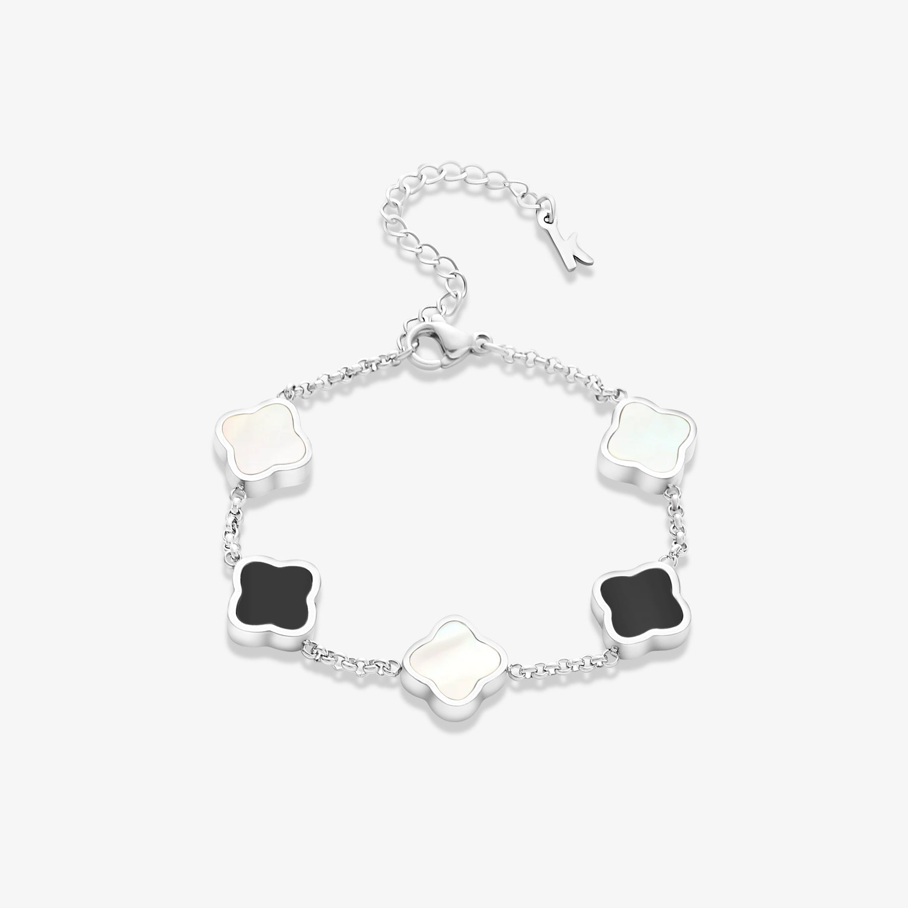 • Käsintehty apilamotiiveilla: Saatavilla valkoisessa helmiäisessä, mustassa emalissa tai teksturoidussa hopeassa henkilökohtaista ilmettä varten.