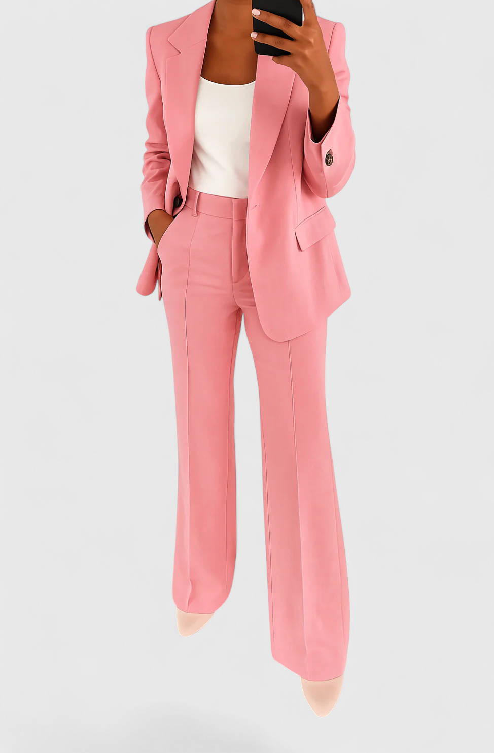 Tyylin ja itsevarmuuden täydellinen harmonia. Koe täydellinen yhdistelmä eleganssia ja voimaa Givette Setillä – räätälöity puku, joka on suunniteltu naisille, jotka haluavat tuntea itsensä teräviksi, itsevarmoiksi ja tyylikkäiksi. Kehonmyötäinen muotoilu korostaa muotojasi, kun taas minimalistinen leikkaus antaa modernin ja hienostuneen ilmeen.