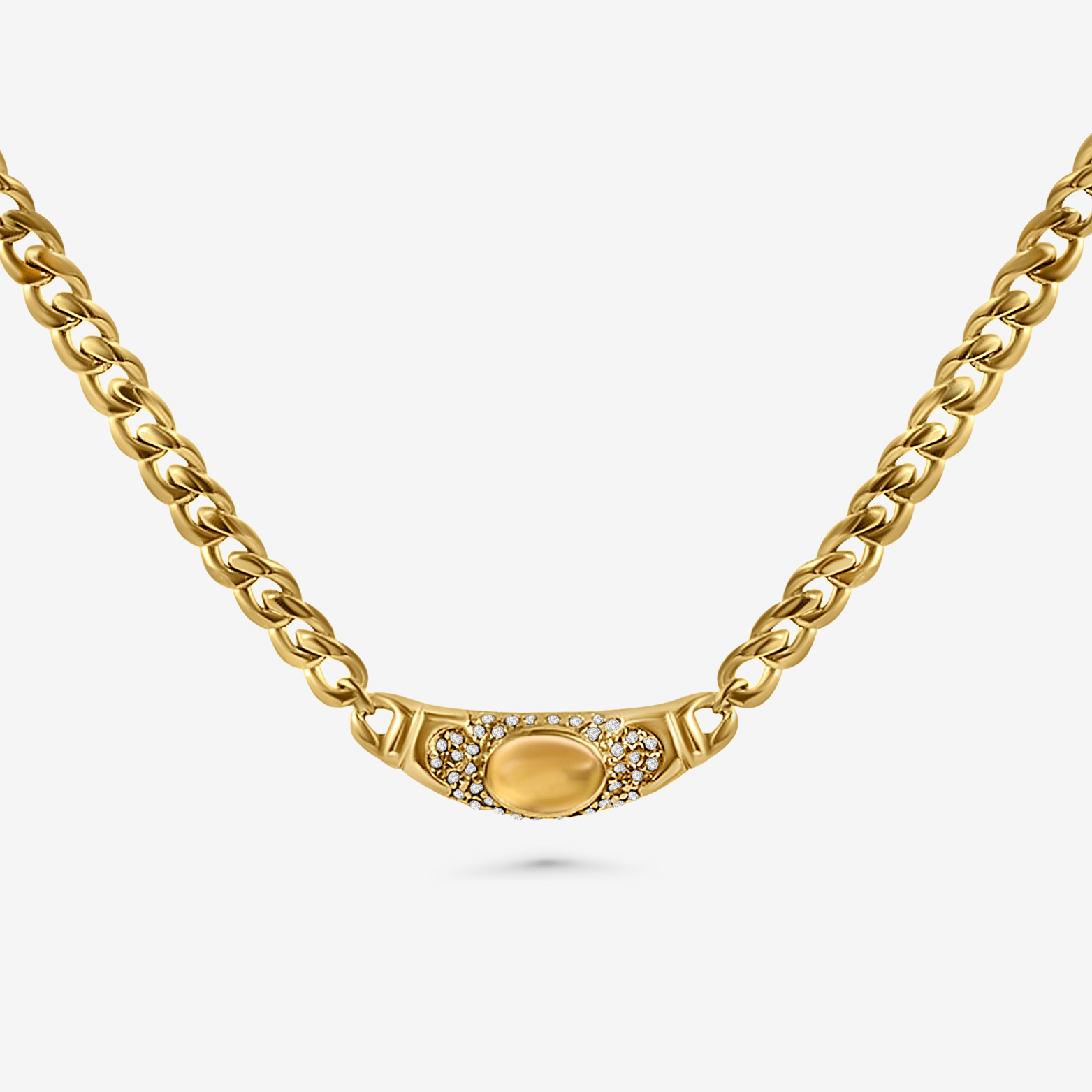 Kanavoi ajaton eleganssi Vintage Bella Kaulakorulla, joka on inspiroitunut ikonisesta Bulgari-muotoilusta, jota Bella Hadid on kuuluisasti käyttänyt. Tämä ylellinen kappale yhdistää vintage-viehätysvoiman moderniin hienostuneisuuteen, mikä tekee siitä täydellisen statementin mihin tahansa asuun.